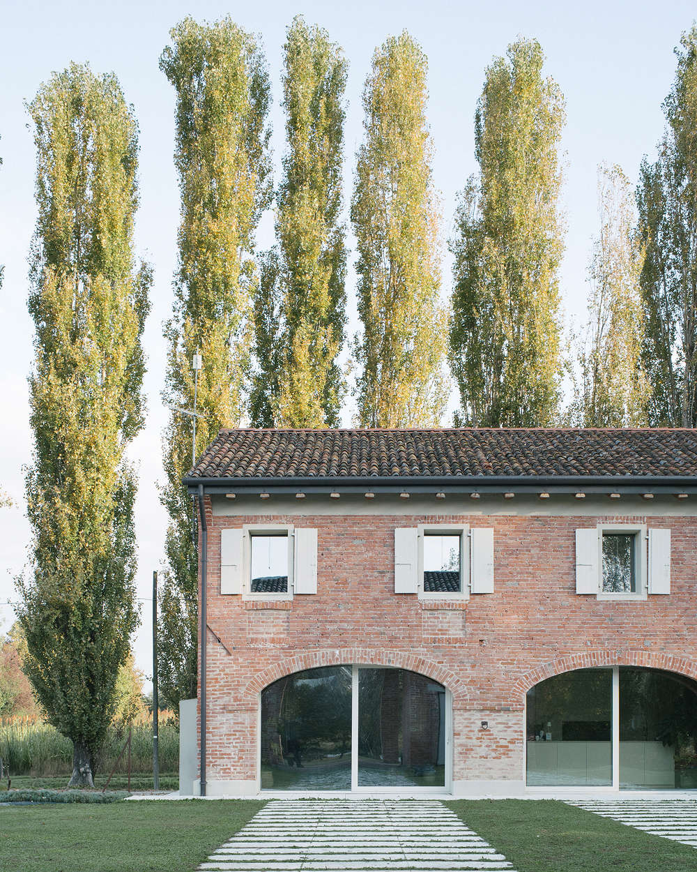 Gli intonaci in calce naturale e il recupero di travi e tavelle raccontano un passato autentico, rivisitato. Il casale conserva all’esterno il suo fascino storico, completato da un giardino rigoglioso e due annessi originali, recuperati con la stessa cura e attenzione.